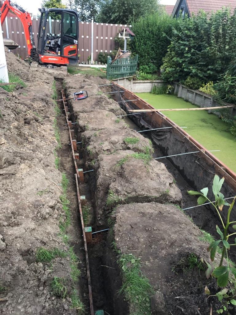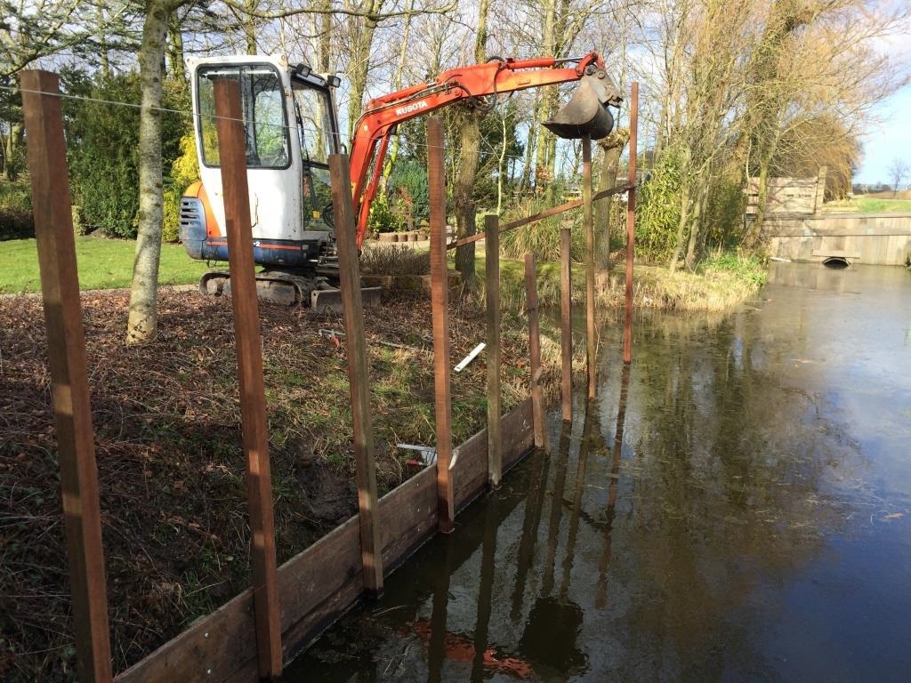 Graafwerk de Noordkop is een specialist in het ontwerpen en realisen van een grondkering of beschoeiing. Het werkgebied is voornamelijk de gemeente Schagen, Kop van Noord-Holland en West Friesland. Ook lever ik tegen zeer scherpe tarieven de meest duurzame Hardhouten materialen zoals Azobe palen en schotten. Voor het plaatsen van de beschoeiing maak ik gebruik van de trilblok en/of elektrische palenrammer. Heeft u extra grond en/of stopzand nodig? Kleine hoeveelheden kan ik met mijn kipaanhanger vlakbij de locatie storten. Voor grotere hoeveelheden maak ik gebruik van een kip vrachtauto met knijpbak!